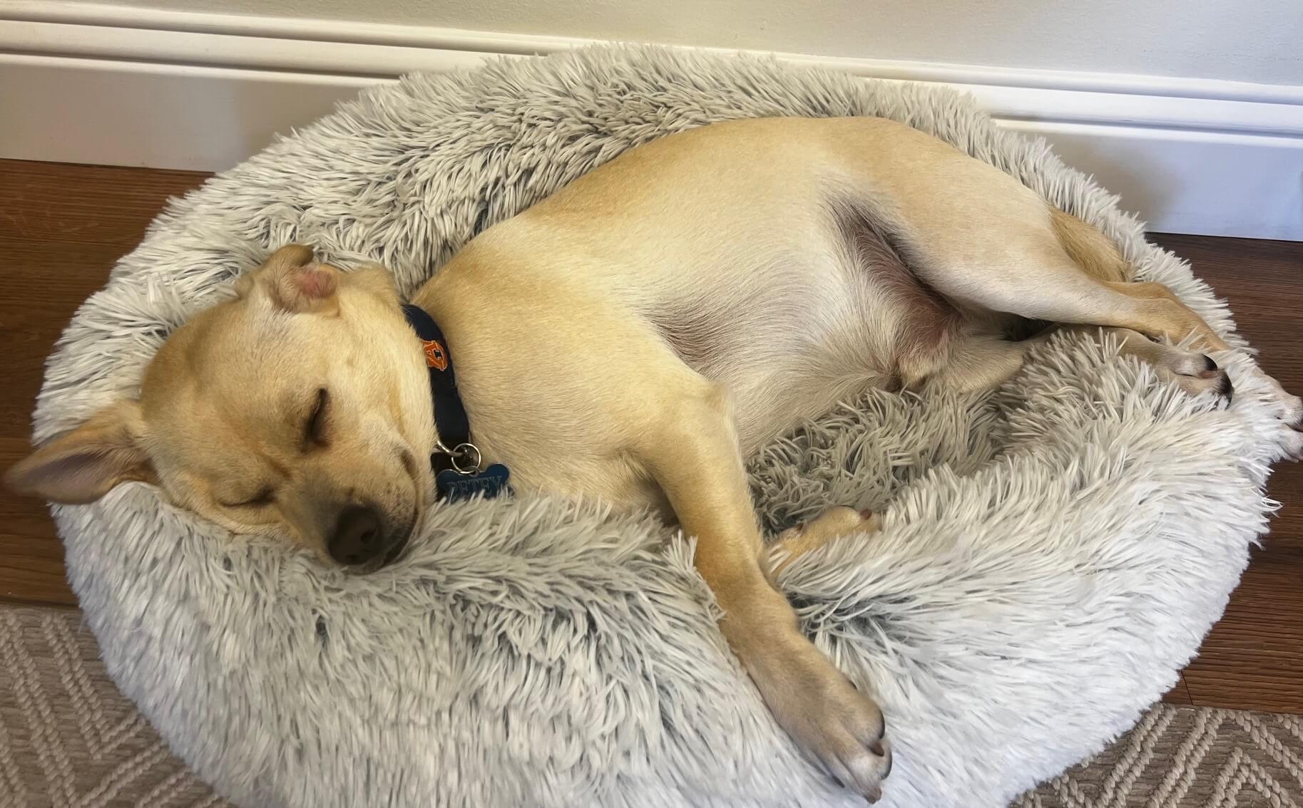 Peter “Petey” Mina rescued US in October of 2023 and has been our Head of Security and Surveillance ever since, in between his naps of course. He’s mostly known as “Sweetie Petey” and loves to greet our customers and will play ball anytime if you’re up for it…if he’s not napping.