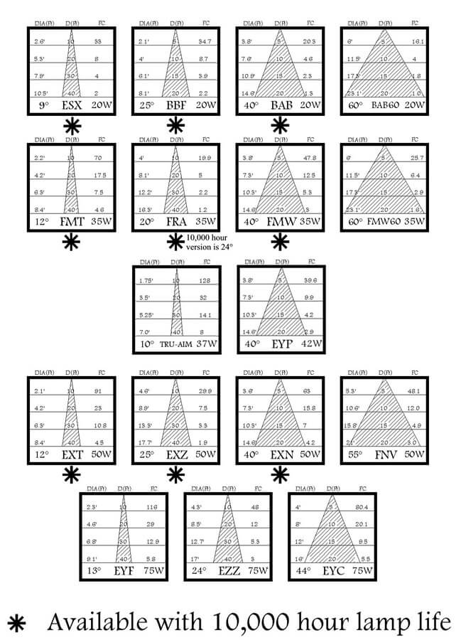 • The last column of numbers is the amount of light output, called footcandles. The higher the number, the brighter the light output.